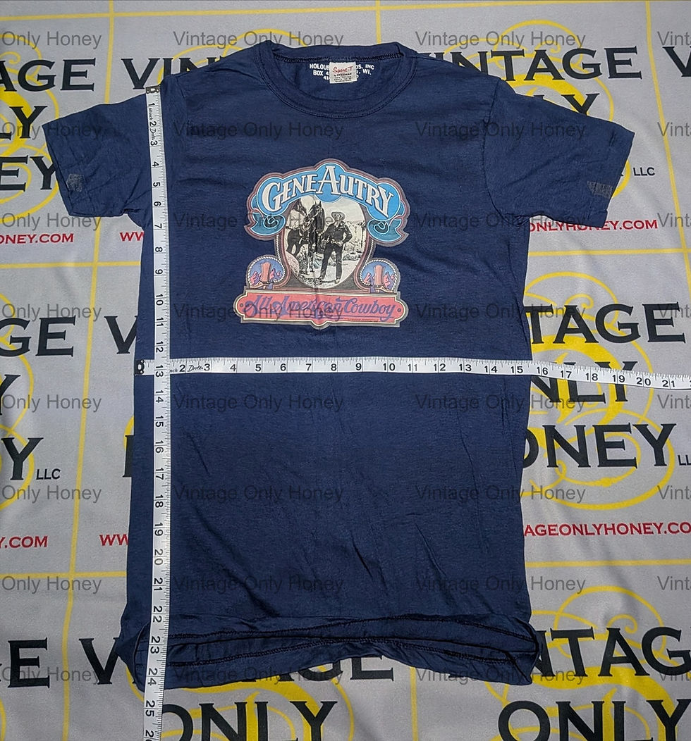 Vintage Holoubek Studios 1976 Gene Autry All American Cowboy T-Shirt Blue