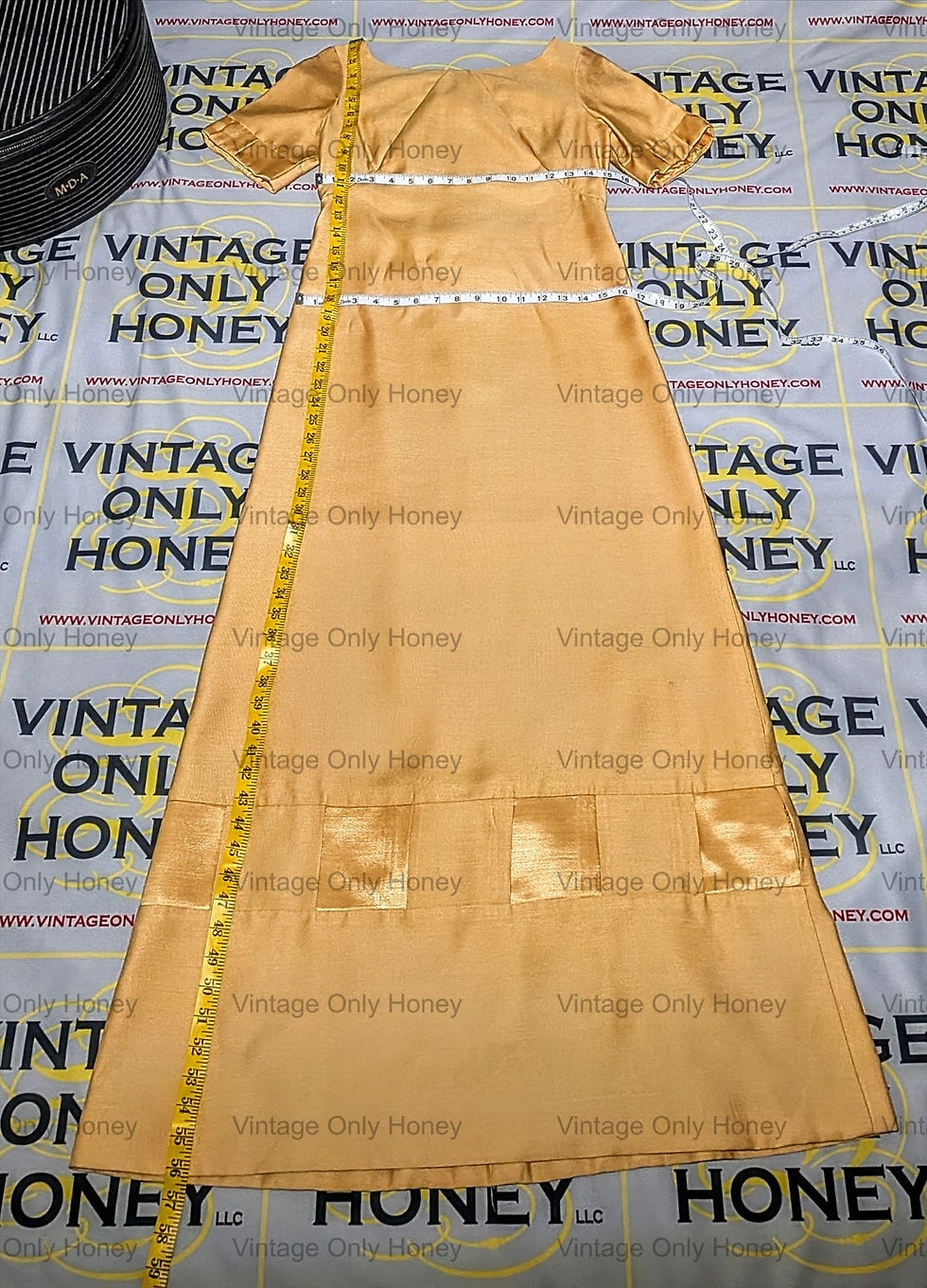 Vintage Emma Domb Long Golden Yellow w/Bow Dress